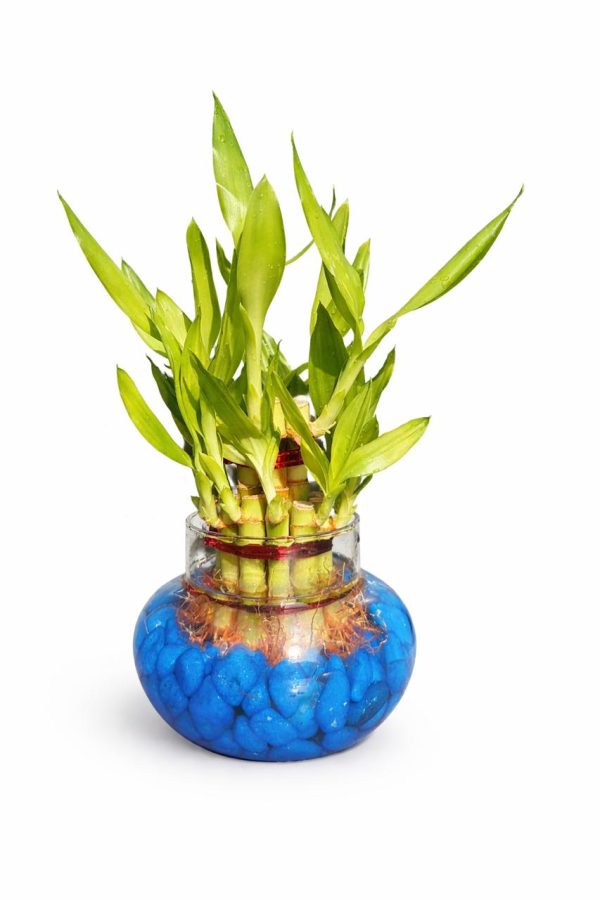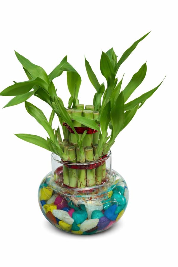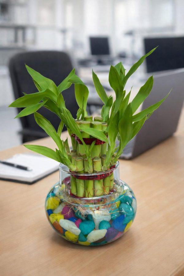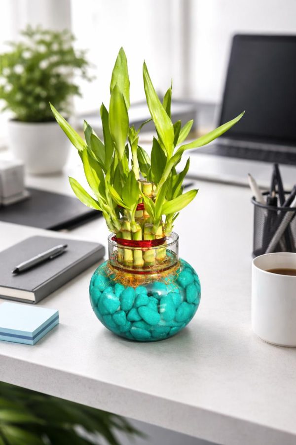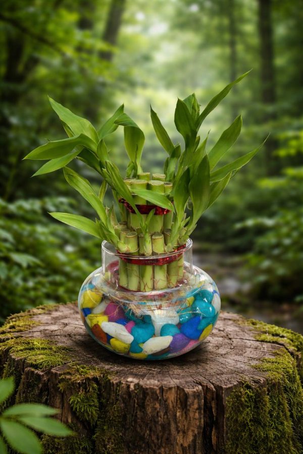 🌿 2 Layer Lucky Bamboo Plant – Handi Type Glass Pot (With 100g Decorative Stones Free)